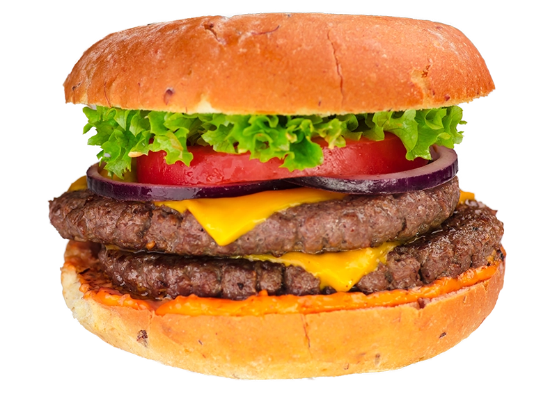 2x 125g Irish-Beef, gegrillte Tomaten, Salat, Cheddar, Burger-Sauce, gegrillte Zwiebeln